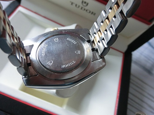 帝舵经典系列23013,表径41,是经典系列中的大号腕表,3点位日历,12点位星期历,帝舵独有的白细纹面,大夜光刻度,18K三角坑表圈,间金表链,搭载2834-2机芯(ETA2834改),劳力士打磨调整过的机芯不用担心,其实用程度已经大大超过大部分的自产机芯。(