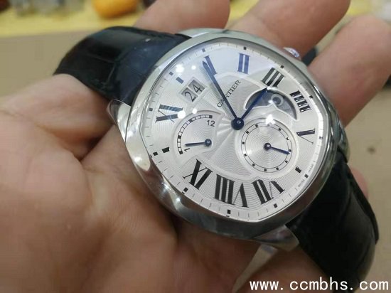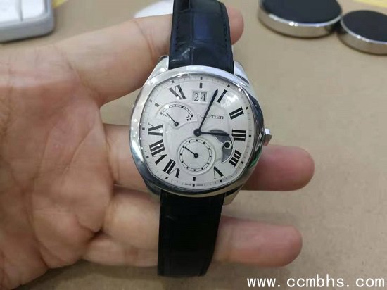 卡地亚DRIVE DE CARTIER系列,多功能腕表,6点位小表盘,两针半设计,10点位飞返针表盘,12点位双日历窗,4点位日夜显示,异形表壳,蓝钢指针,尖晶石把头,卡地亚经典元素丰富,背透设计,卡地亚自产1904机芯工作状态尽收眼底。(长春回收名表钻石,回收手表)