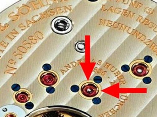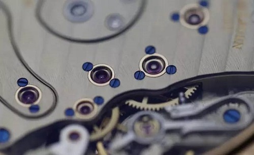 在红宝石轴眼没有被应用在钟表上的时候,钟表的齿轮都是直接放入机芯事先准备好的孔洞中,那么就会出现铁磨铁的情况,时间长了,当然会对机芯造成严重的磨损,经常接触怀表的朋友可能会知道,18世纪中期的怀表机芯中基本孔洞旋入齿轮轴的一种设计,后来瑞士的工匠们发现红宝石可以降低机芯轴与孔洞的磨损,会大大提高机芯的使用寿命和工作稳定性,所以红宝石轴眼被大量的应用在钟表上,当时大家对机芯素质高低的评价就是使用红宝石的数量。但是,红宝石做为一种硬质宝石,当时没有先进的加工设备,其加工和切割都是难度很高的,工匠们为了方便换宝石轴眼,就会在机芯孔洞边缘装配一个外圈,我们叫这个东西为套筒,为的就是更换损坏的红宝石轴眼的时候,不用为了轴眼尺寸不同而改变机芯孔洞的大小。当时的套筒大部分都是铜材质的,只有极为高端的腕表才会在机芯上装配18K黄金的套筒,这个就是黄金套筒的来历。